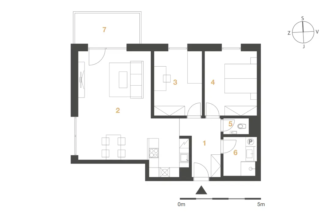 - Obývací pokoj + kk 38,7 m2
